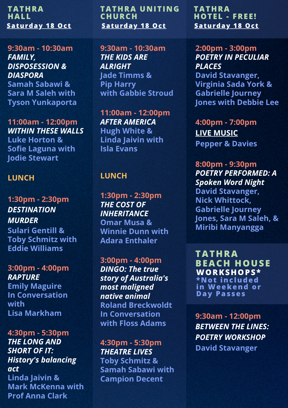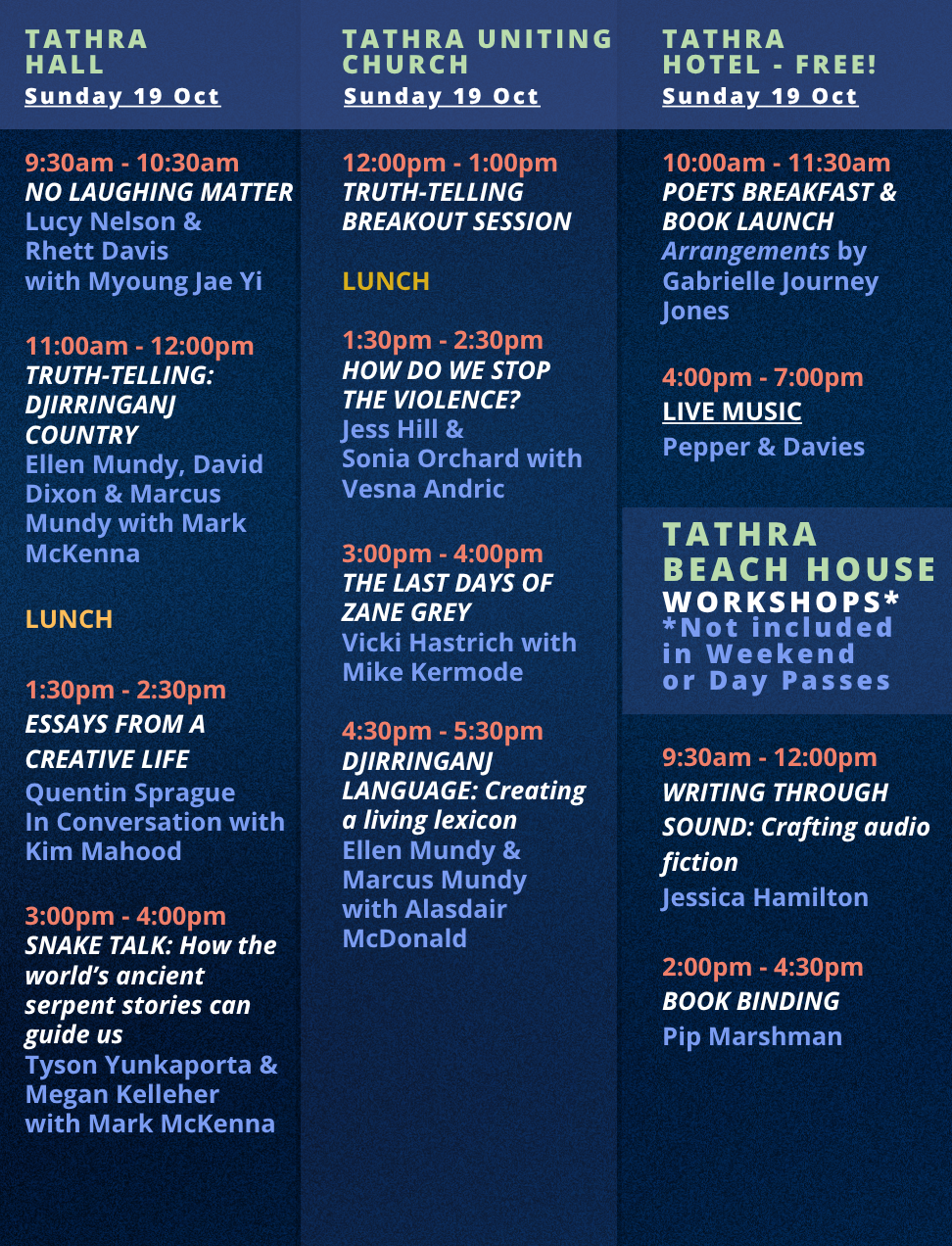 OPENING NIGHT AT TATHRA HOTEL from 7:00pm
